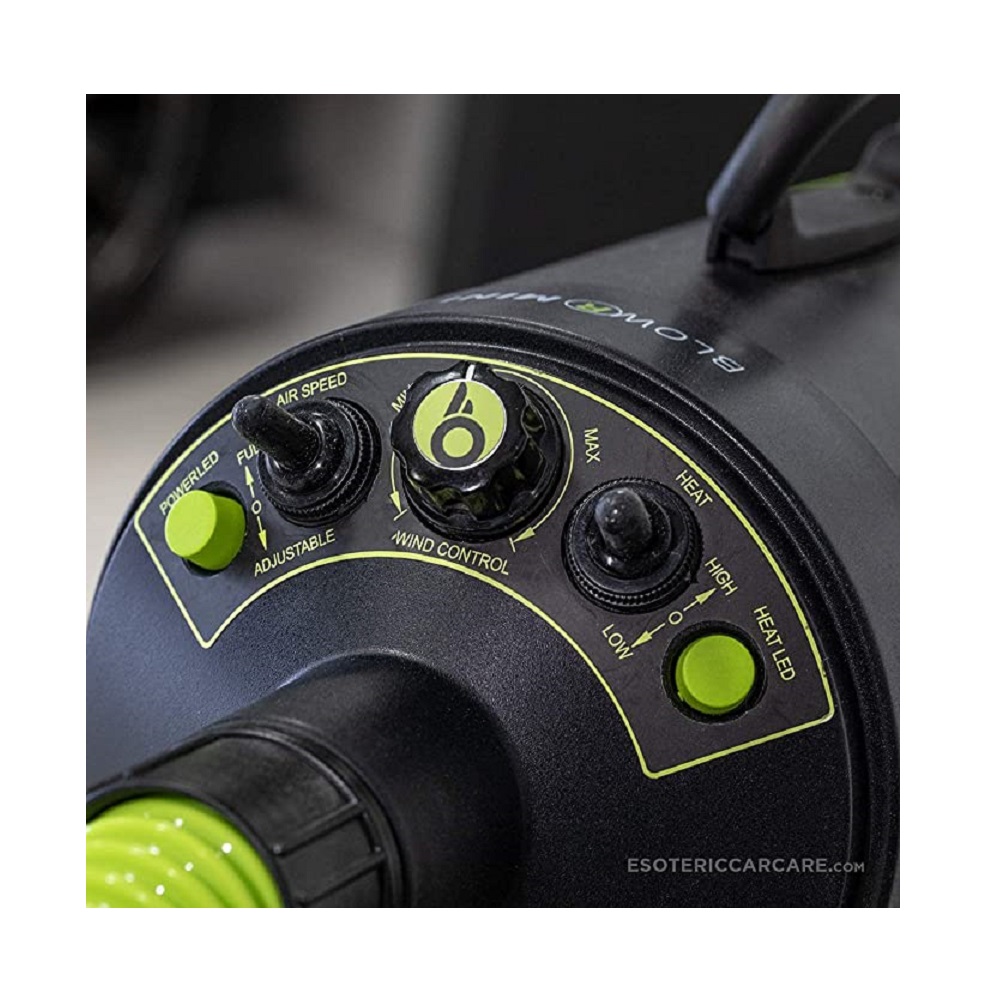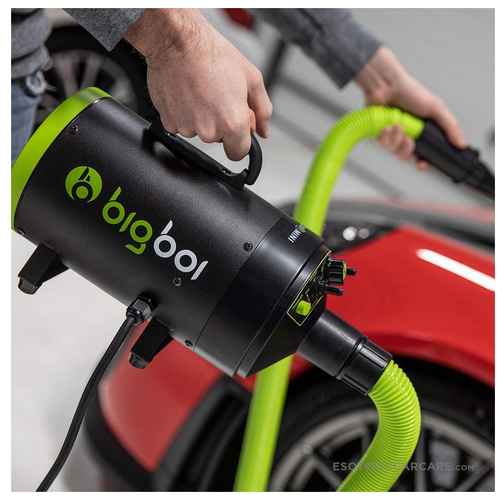 Bigboi BlowrMini er fyrirferðalítill blásari til að þurrka bílinn. Með BTT (Bigboi temperature technology) hitar blásarinn loftið upp og er hægt að velja á milli 15°c, 25°c eða 45°c og blæs því filteraðu út á 72-250 km/klst. hraða og því tekur enga stund að þurrka bílinn, mótorhjólið eða bara hvað sem er. Með því að nota blásarana frá bigboi minnkaru líkur á dropaförum til muna. Öruggt að nota á lakk, plast, leður, filmur og króm. Tveir gúmmí stútar fylgja með ásamt filter sem má skola. 2800w mótor sem skilar allt að 4 hp. Með bigboi þurrkaru bílinn án þess að snerta hann og minnkar því líkur á að rispa lakkið við þurrkun. Eitthvað sem bílaáhugamaðurinn þarf að eignast.