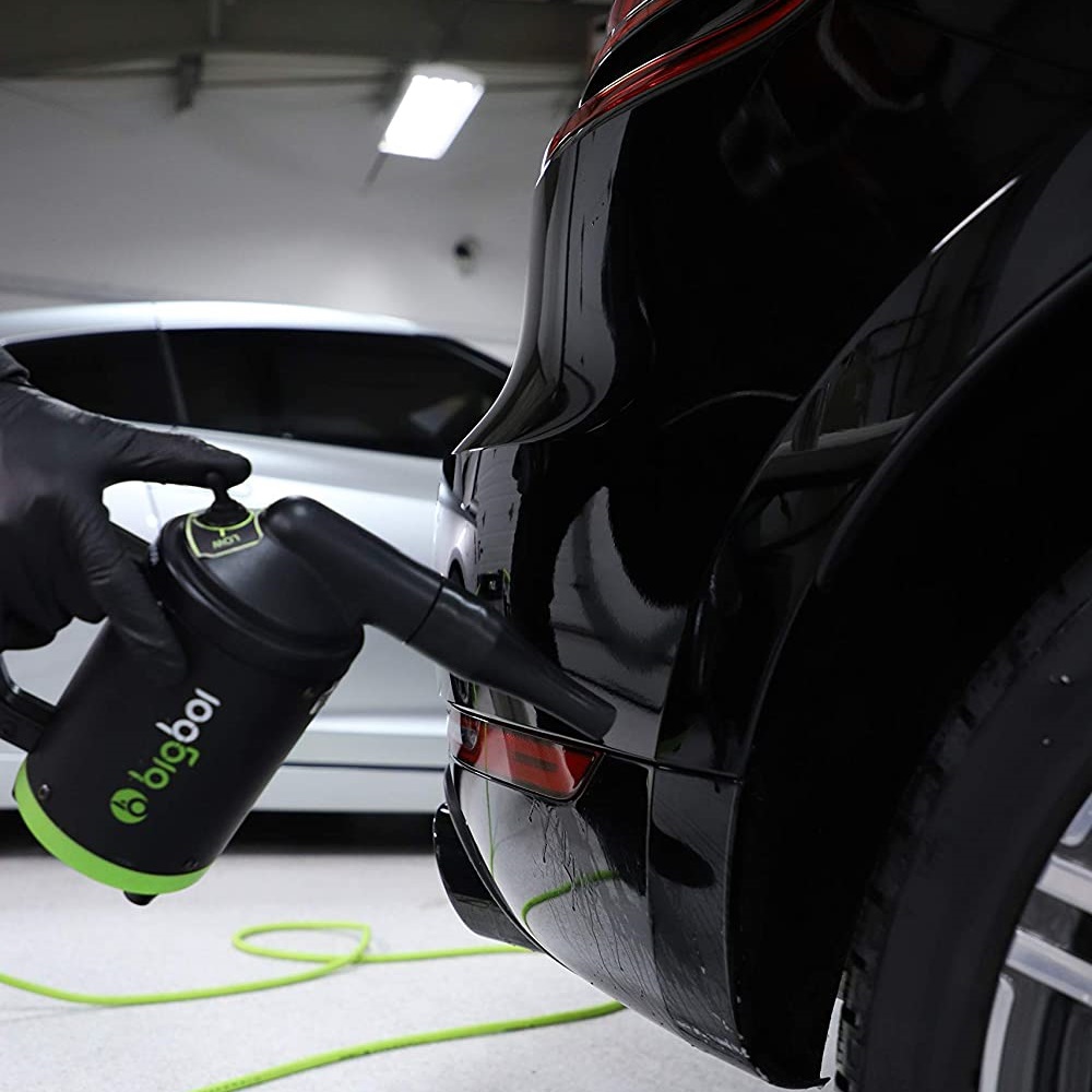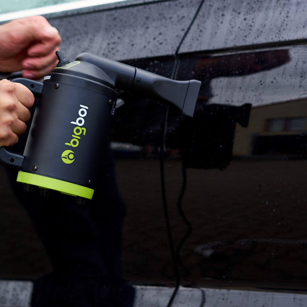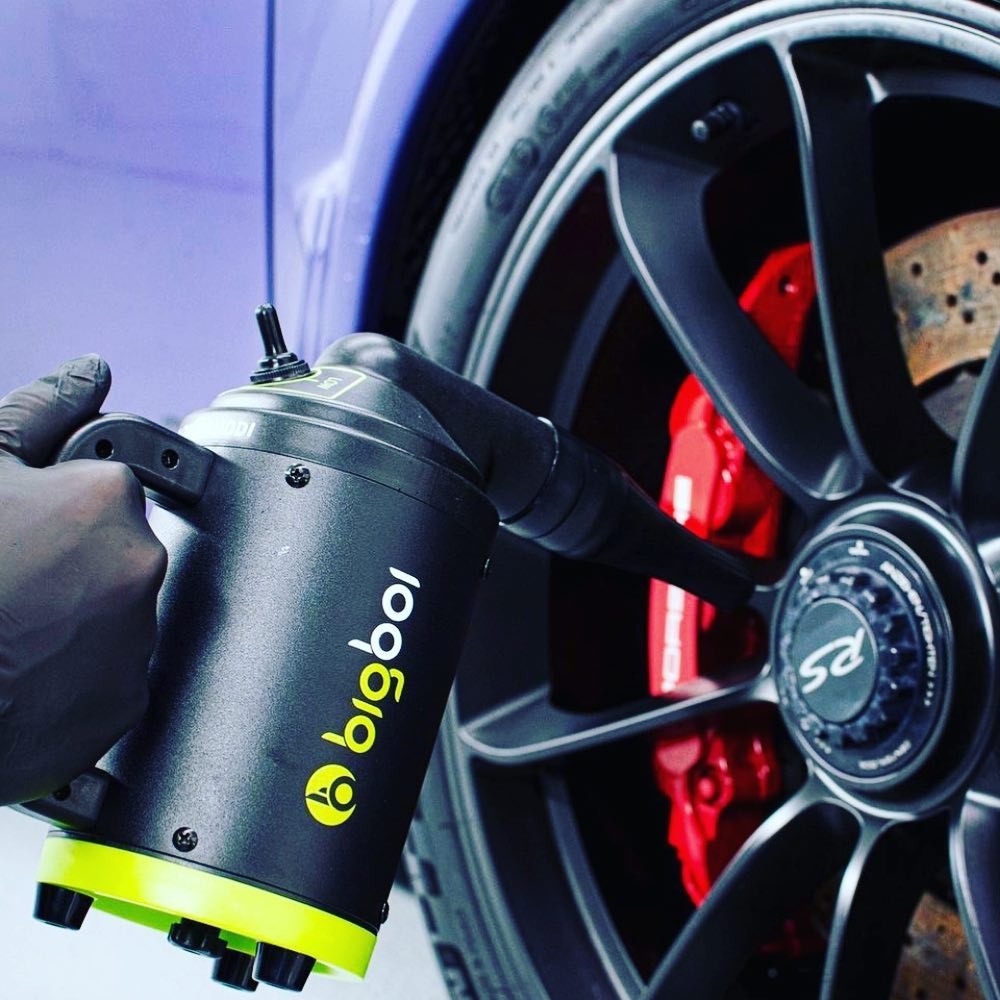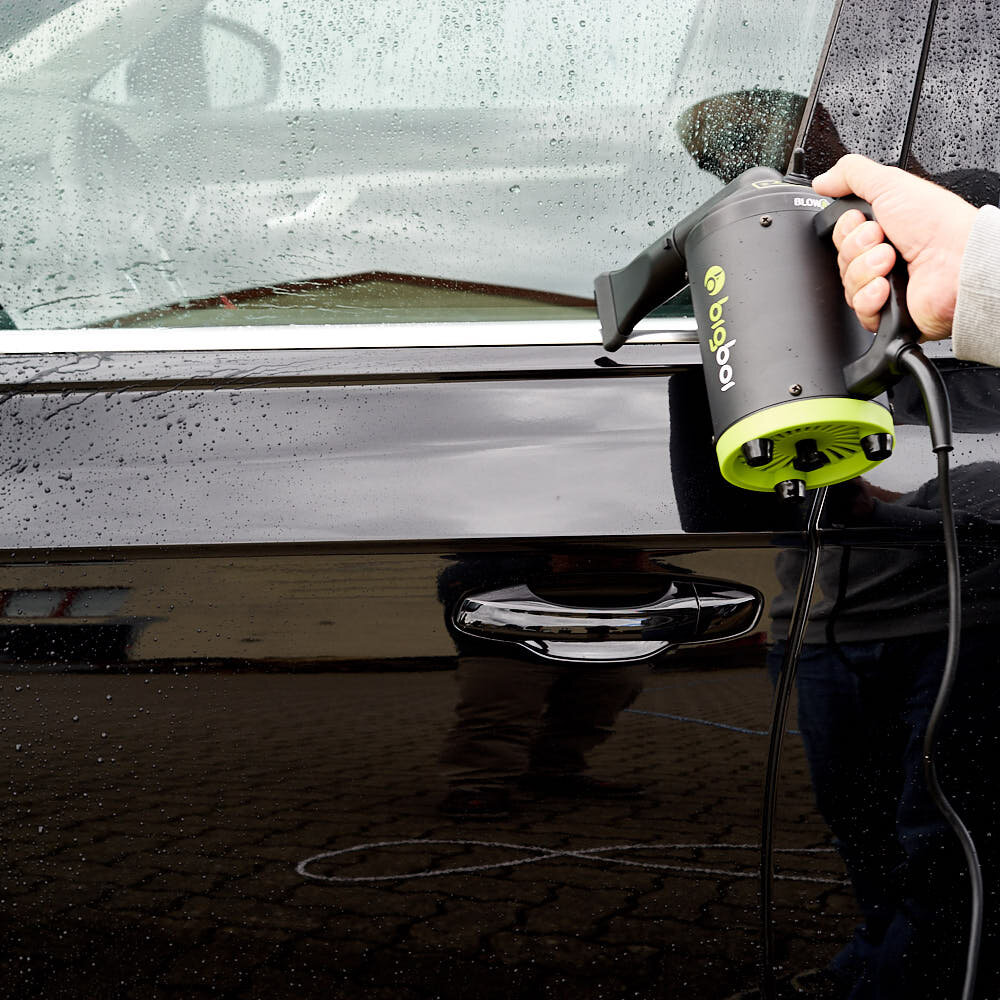 Bigboi Buddy er handhægur og nettur blásari til að þurrka bílinn. Með BTT (Bigboi temperature technology) hitar blásarinn loftið upp um 25°c og blæs því filteraðu út á 72-220 km/klst. hraða og því tekur enga stund að þurrka bílinn, mótorhjólið eða bara hvað sem er. Með því að nota blásarana frá bigboi minnkaru líkur á dropaförum til muna. Öruggt að nota á lakk, plast, leður, filmur og króm. Tveir stútar húðaðir silicon fylgja með ásamt filter sem má skola. Skilvirkasta einstaka kerfið í greininni sem samanstendur af 1000w mótor sem skilar allt að 1,2 hp. hannað í Ástralíu. Fullkominn blásari í skúrinn.