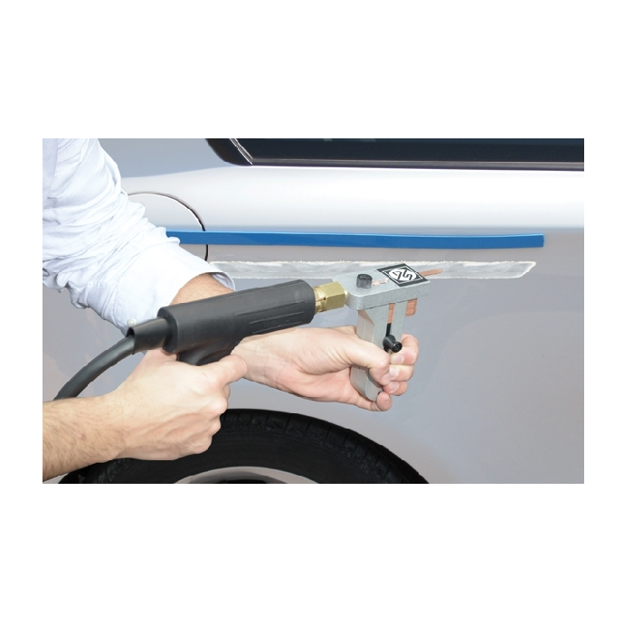 Kerfið er mjög hagnýtt og getur stytt notkunartímann um allt að 70% og eykur nákvæmni. Framleitt úr áli, létt og auðvelt í notkun, sérstaklega sterkt og þarf ekkert viðhald. Hægt að nota með hvaða eða nánast hvaða „spotting welder“ sem er á markaðnum.
