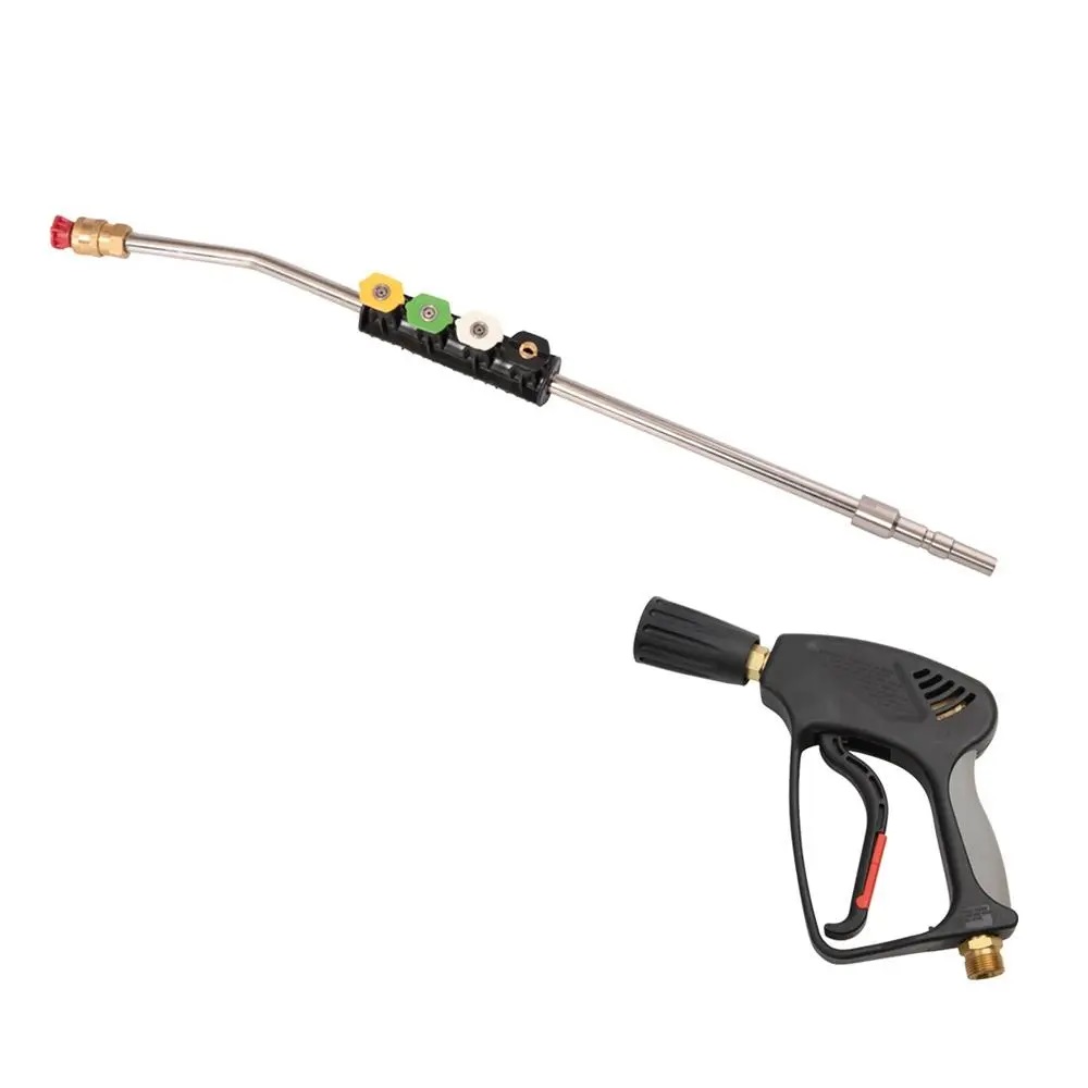 Búnaðurinn inniheldur háþrýstibyssu með Nilfisk hraðtengibúnaði, með M22 karl inntaki og sprotta með Nilfisk hraðtengi og 5 stútum(1/4″ tengi).