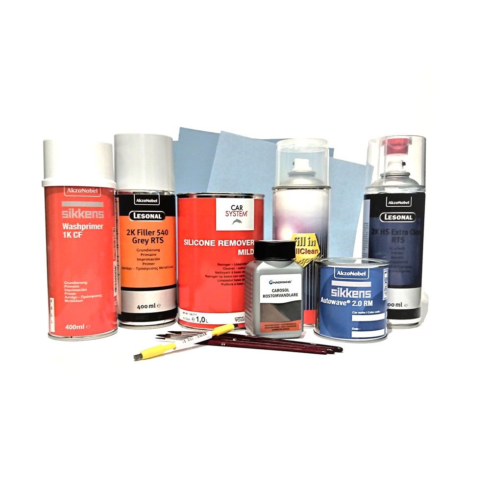 LÚXUS settið inniheldur allt sem þarf til lagfæringar á meðalstórum eða stærri blettum og nauðsynlegt er að úða og fá sem bestu áferð og endingu.