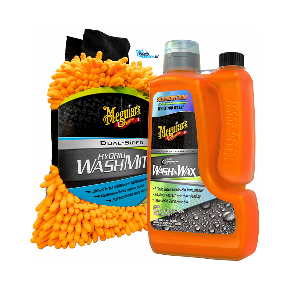 Hybrid Ceramic Wash And Wax er mögnuð sápa sem inniheldur SiO2, sem þýðir að þú þværð bílinn og húðar hann í leiðinni með Hybrid Ceramic Bóni. Gefur einstaka vatnsperlun sem minkar líkur á að óhreinindi setjist föst á lakkið og þar að leiðandi verður aðveldara að þrífa bílinn. Hreinsar lakkið án þess að fjarlægja bón og frískar uppá bónhúð sem fyrir er. Sápan hentar einstaklega vel með Hybrid ceramic bón línunni sem og öðru bóni. Notið Hybrid þvottahanskann með sápunni.