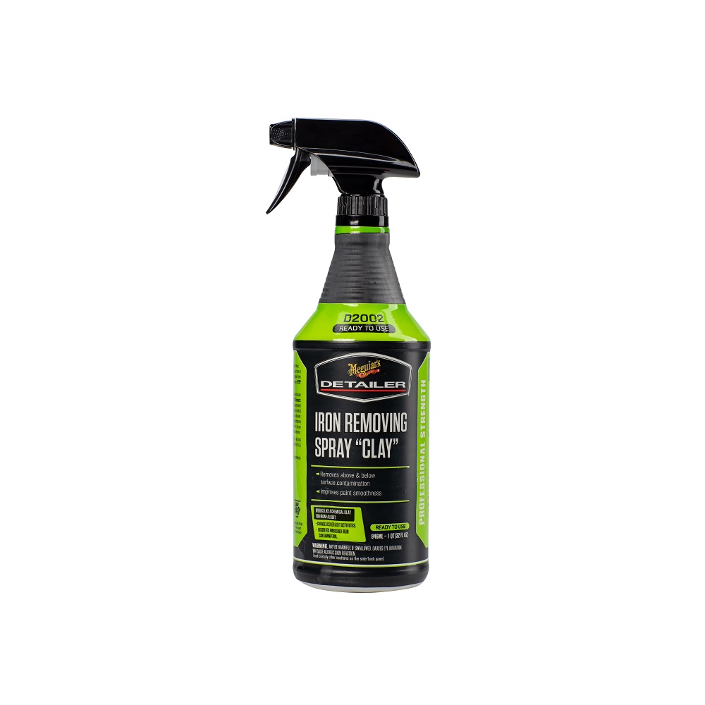 Meguiar’s Iron Removing Spray “Clay” fjarlægir járnagnir og önnur óhreinindi á skjótann hátt jafnt á yfirborð lakksins sem og undir því. Með því að nota efnið flýtiru fyrir undirbúningi á mössun og nærð betri árangri. Með því að fjarlægja járnagnir úr lakkinu færðu aftur þessa silkimjúku áferð og var á bílnum þegar hann var nýr. RTU Detailer línan státar af hágæða efnum sem hingað til hafa einungis verið í boði í stórum einingum en eru nú fáanleg klár til notkunar og eru fullkomin viðbót við þrifin á heimilisbílnum eða á bónstöðina.