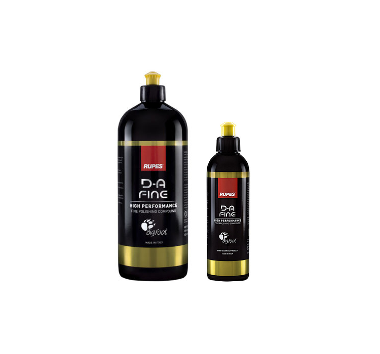 RUPES HIGH PERFORMANCE CUT POLISHING COMPOUND D-A FINE er niðurstaða umfangsmikilla prófana til að þróa fínan massa sem sameinar góða skurðargetu og glæsilegan frágang. Þessi framúrskarandi nýji massi var þróaður og blandaður innandyra hjá RUPES og er hannaður til að vinna með BigFoot Dual Action massavélum sem og MILLE gírdrifnum massarokk. DA-FINE er litakóðaður gulur sem þíðir að hann virkar best með DA gulum massapúðum, svamp, ull og örtrefjapúðum. DA FINE er frábær til að fjarlægja minni galla í lakkinu, skilar einstökum gljáa og er auðveldur í notkun sem skilar frábæra notendaupplifun.DA-FINE er hið fullkomna annað skref í mössun á eftir DA-COARSE á nánast hvaða lakk yfirborði sem er, gelhúðuðum eða lakkaðri áferð eða sem sjálfstæð lausn fyrir léttmössun.