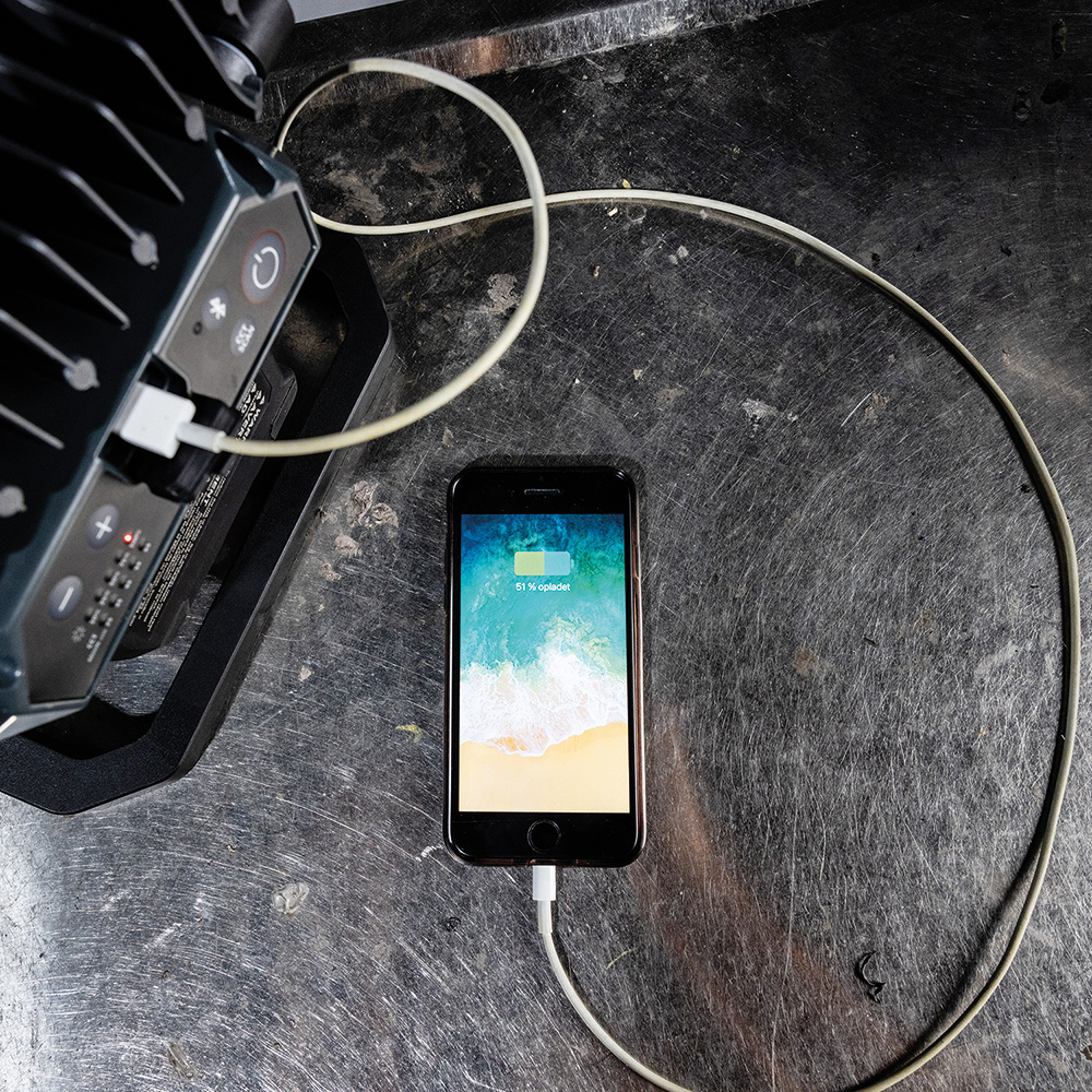 - Öflugur kastari sem gengur fyrir rafhlöðu eða beintengdur í rafmagn.