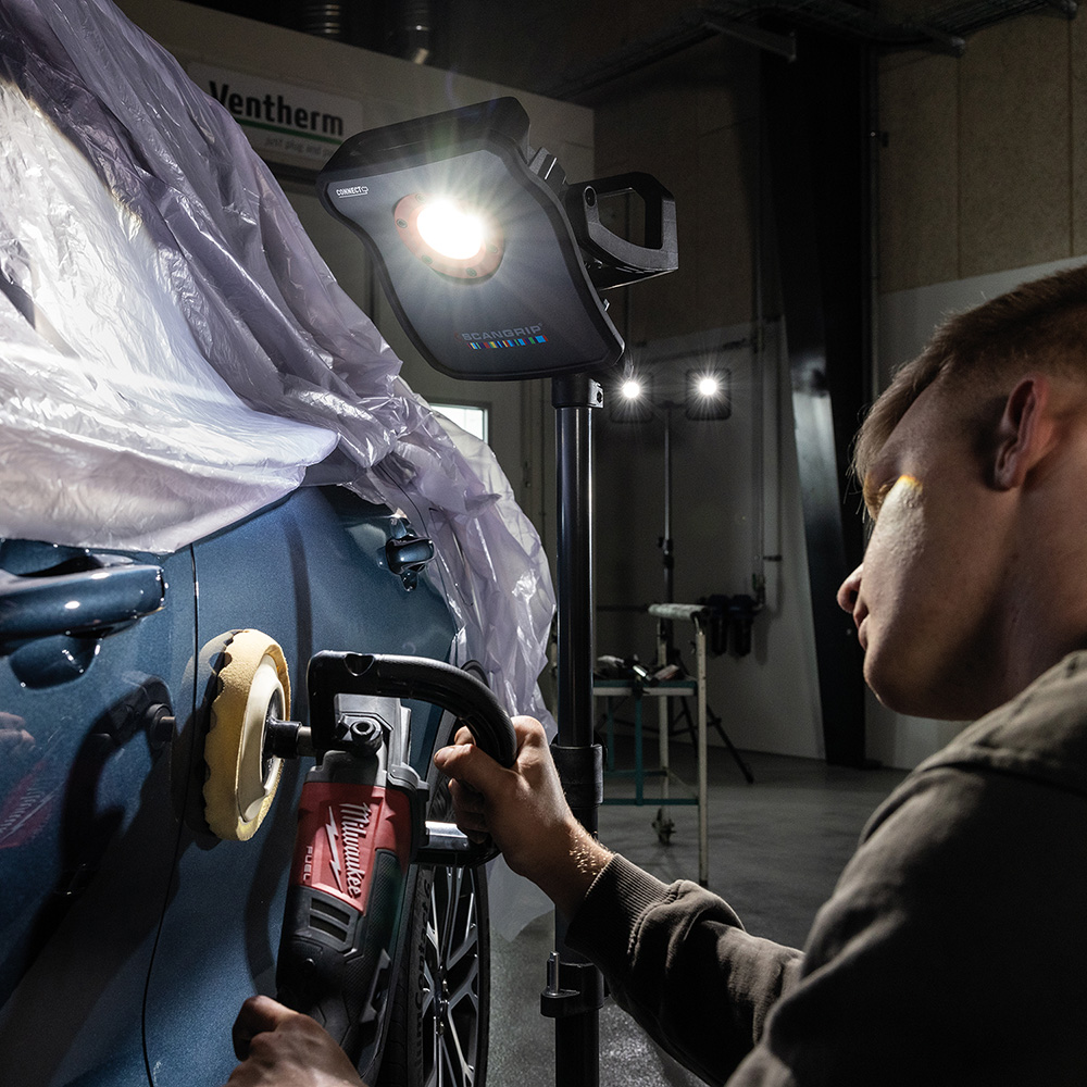 Hið öfluga ljós MULTIMATCH CONNECT 3 skilar allt að 3000 lumen lýsingu og gert til að sýna yfirborðið í réttu ljósi við hverskyns vinnu, s.s. málun, lakkhreinsun og mössun. MULTIMATCH 3 CONNECT er samhæft með 18V / 20V hleðslu rafhlöðum frá öllum helstu verkfæra framleiðendum með því að nota SCANGRIP CONNECTOR. Einnig er hægt að nota POWER SUPPLY CONNECT til að beintengja lampann við rafmagn.