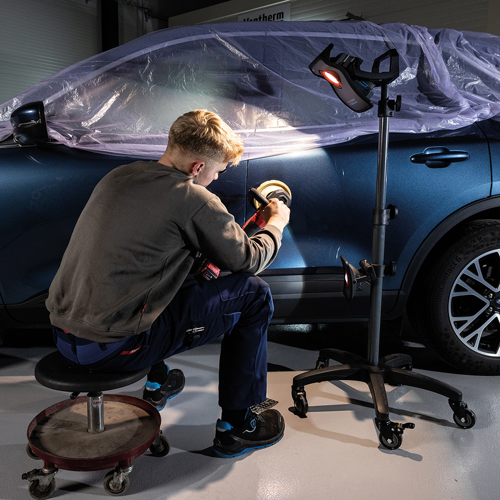 MULTIMATCH 3 CONNECT er eitt það besta sem hægt er að nota við lakkleiðréttingu, hægt að beintengja við rafmagn eða notast við rafhlöður frá helstu verkfæra framleiðendum. Ljósið gefur allt að 3000 Lumen frá sér og er með sérstaka SCAN stillingu til að finna rétta birtu í verkið.