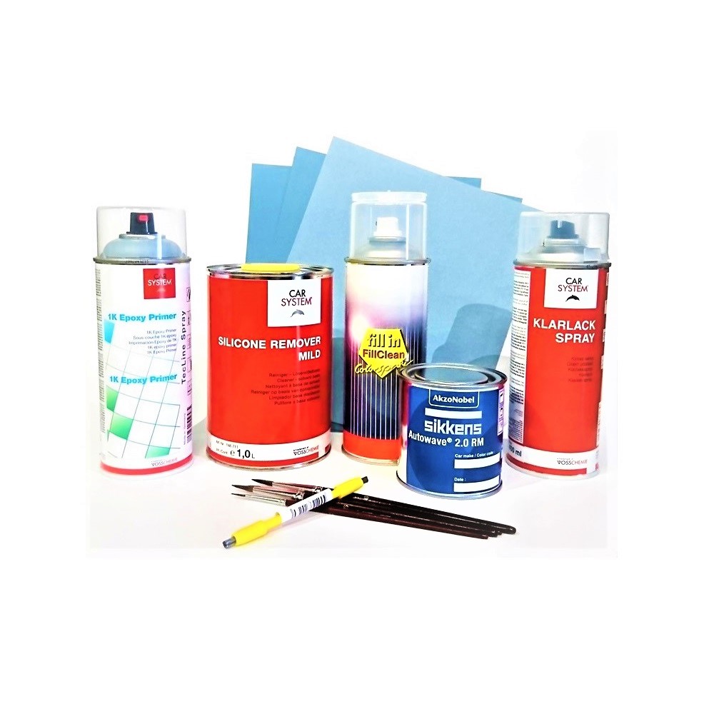 Spreysettið inniheldur allt sem þarf til lagfæringar á meðalstórum blettum og nauðsynlegt er að úða til að ná betri áferð, t.d. lófa stórir blettir, sílsar eða álíka.
