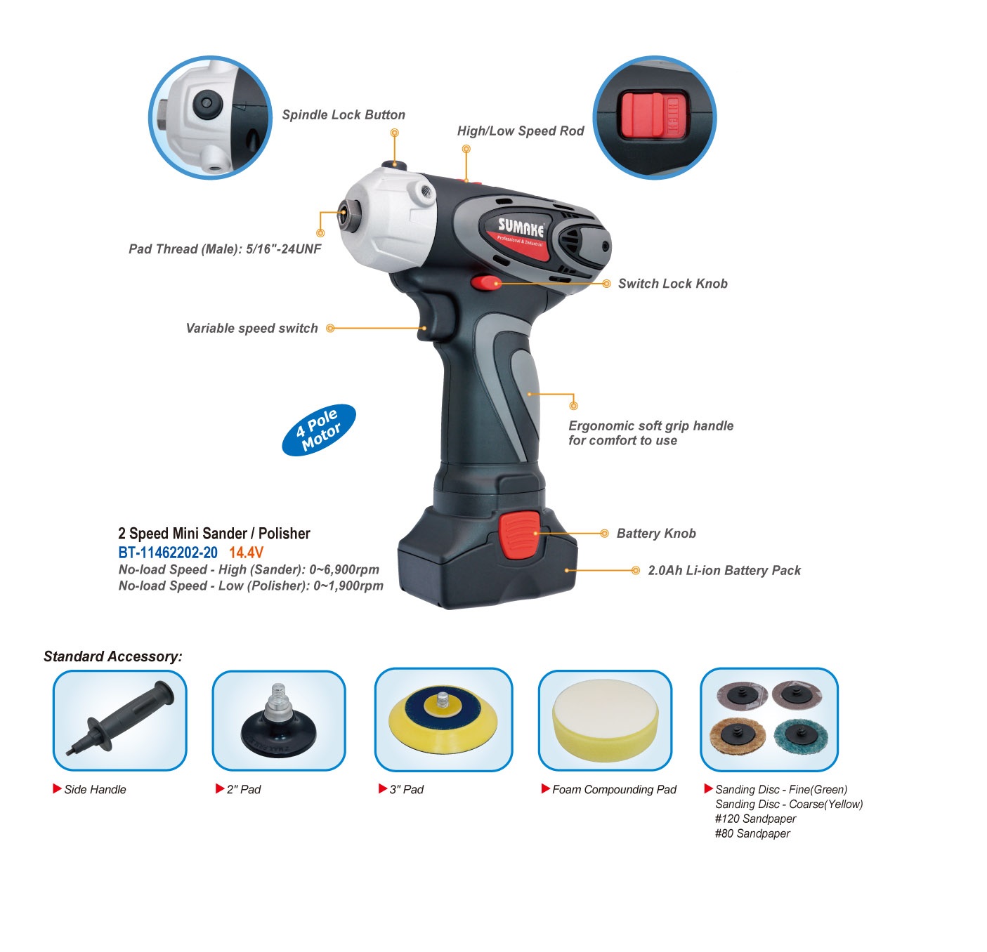 Sumake Massa- og slípivél hleðslu 14.4V