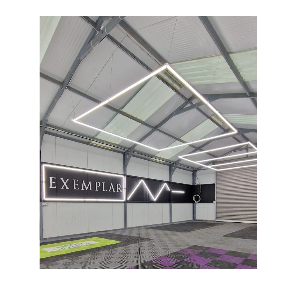 Loksins er fáanleg alvöru lýsing í bílskúrinn, bónstöðina, sýningarrýmið eða bara hvar sem er þar sem þörf er á góðri lýsingu. Pakkinn samanstendur af 2 kassalaga LED ljósum. Vertu með alvöru lýsingu í rýminu þínu og ekki skemmir fyrir að þetta snaaar lúkkar. Hægt er að breyta uppsetningunni og tengja saman að vild. Hægt er að fá auka túbur og tengi, svo að það eru engin takmörk sett á uppsetningu.