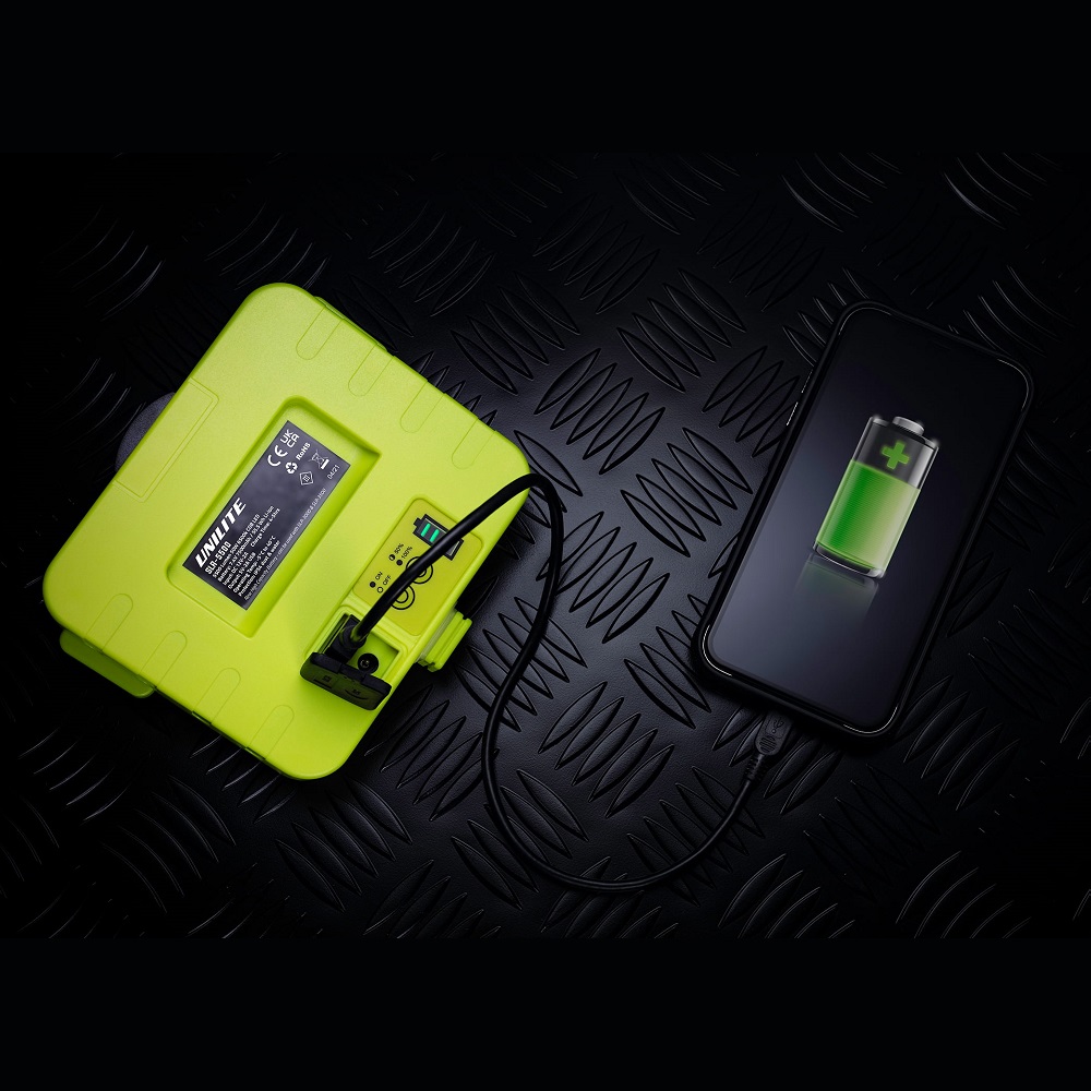 SLR-5500 er gríðarlega bjartur 5500 lumena vinnu kastari með hleðslubanka og endurhlaðanlegri rafhlöðu. SLR-5500 getur hlaðið önnur tæki í gegnum USB. Auðvelt er að snúa ljósinu og er það með öflugum segli í standinum til að auðvelda uppsetningu. Ljósið er framleitt úr styrktu Polycarbonate með glampafrírri linsu. Hægt er að festa ljósið á þrífót.